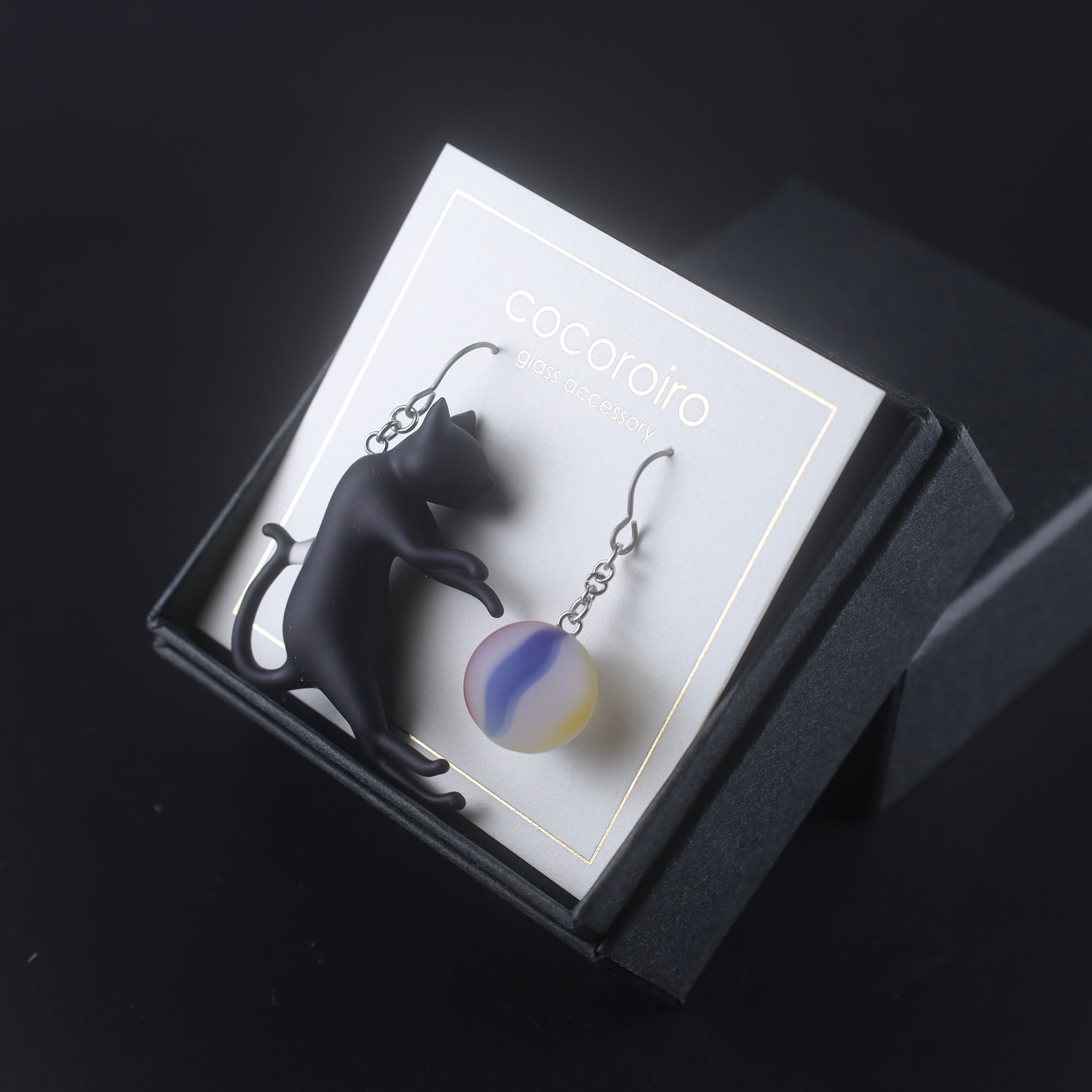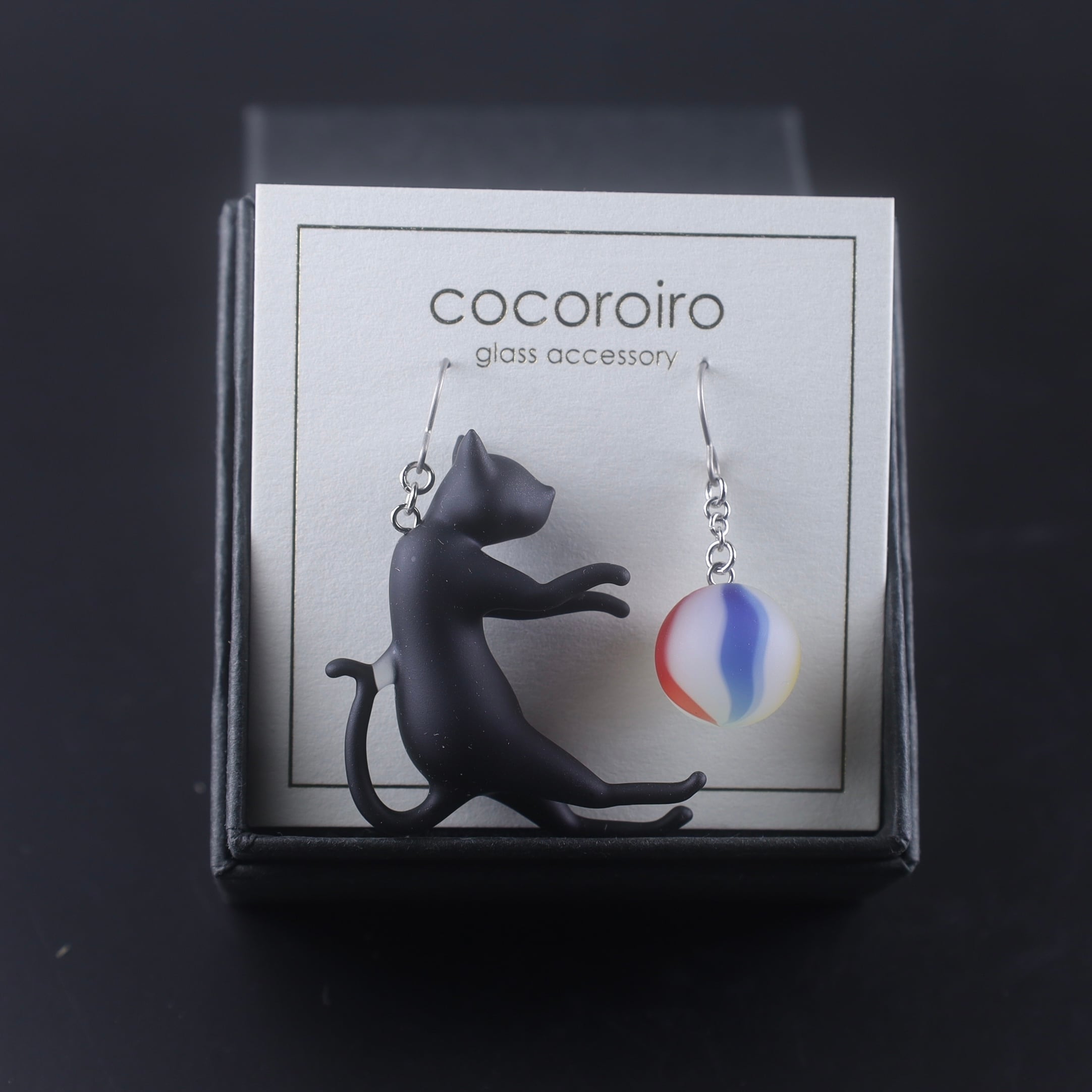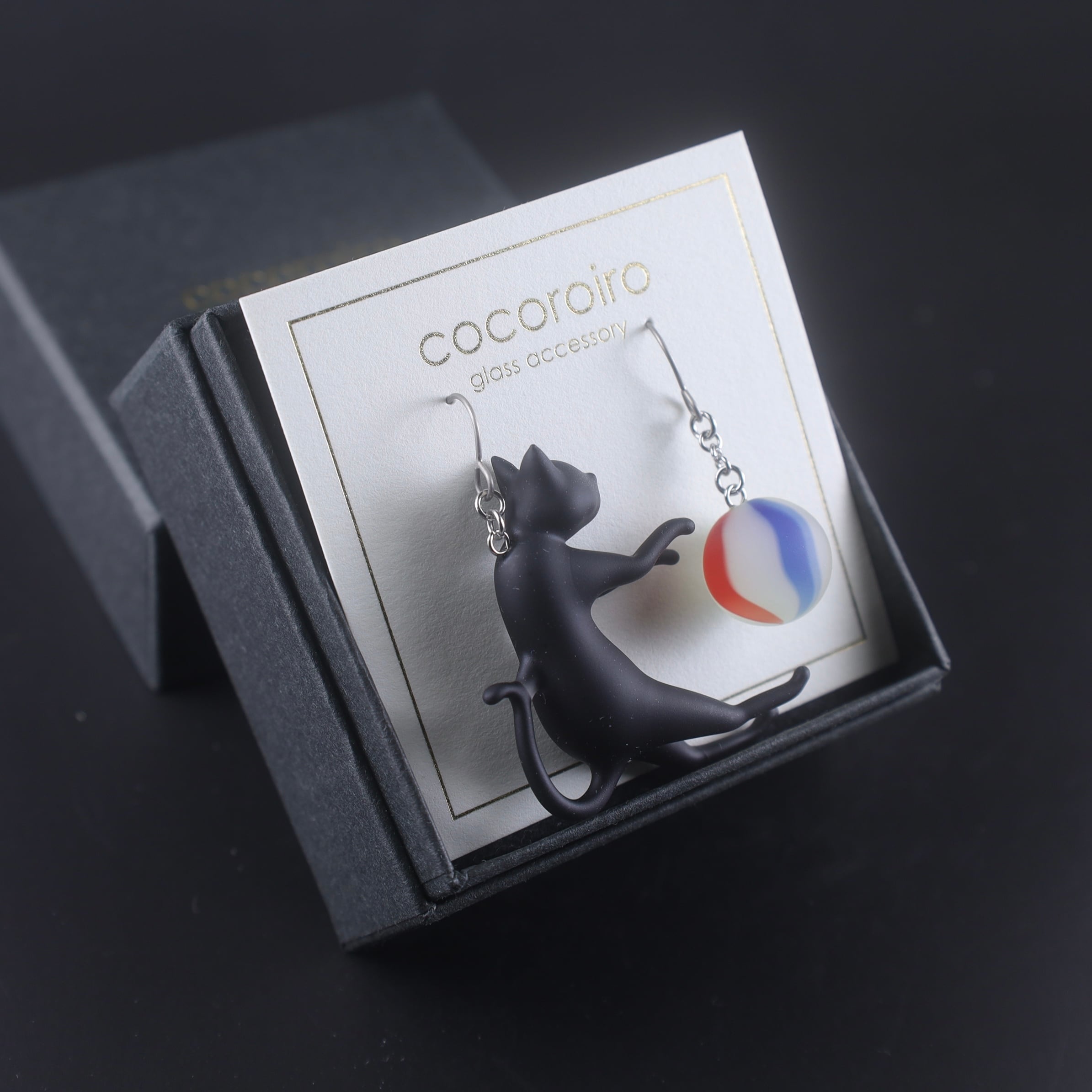 鞠にじゃれついて遊んでいるような黒猫のピアスになります。