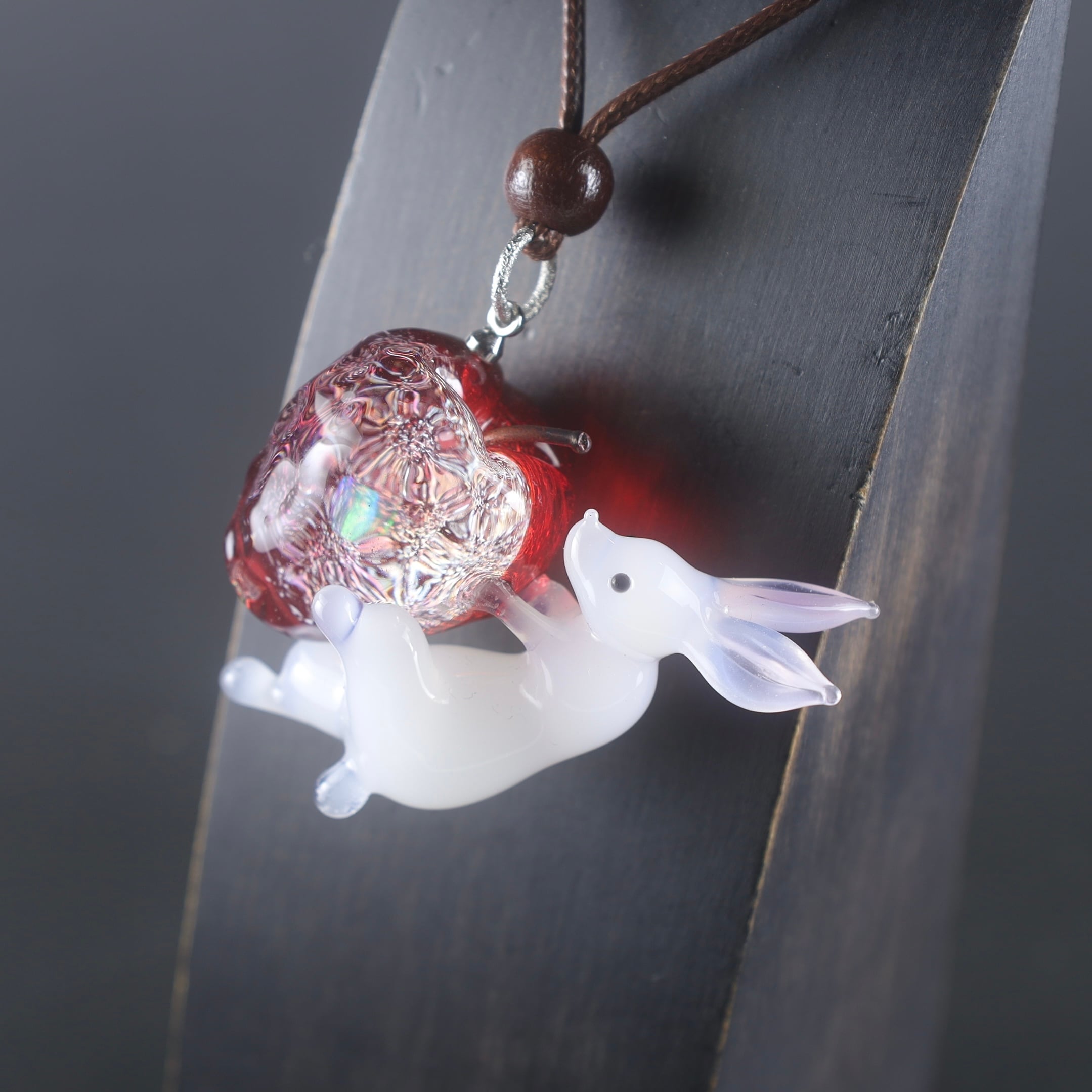 角度によって表情を変える不思議なリンゴに誘われたうさぎ、是非お迎えよろしくお願いします。