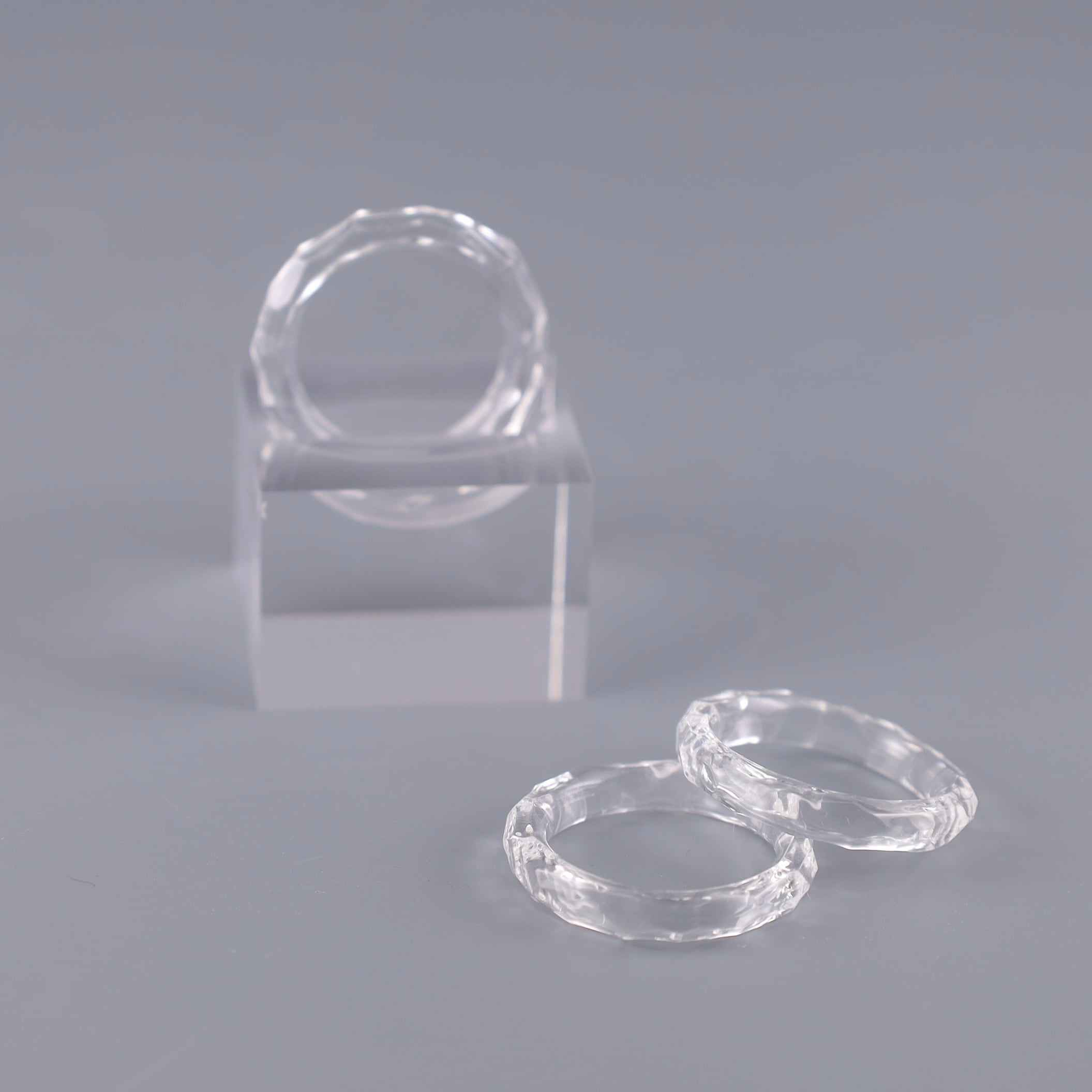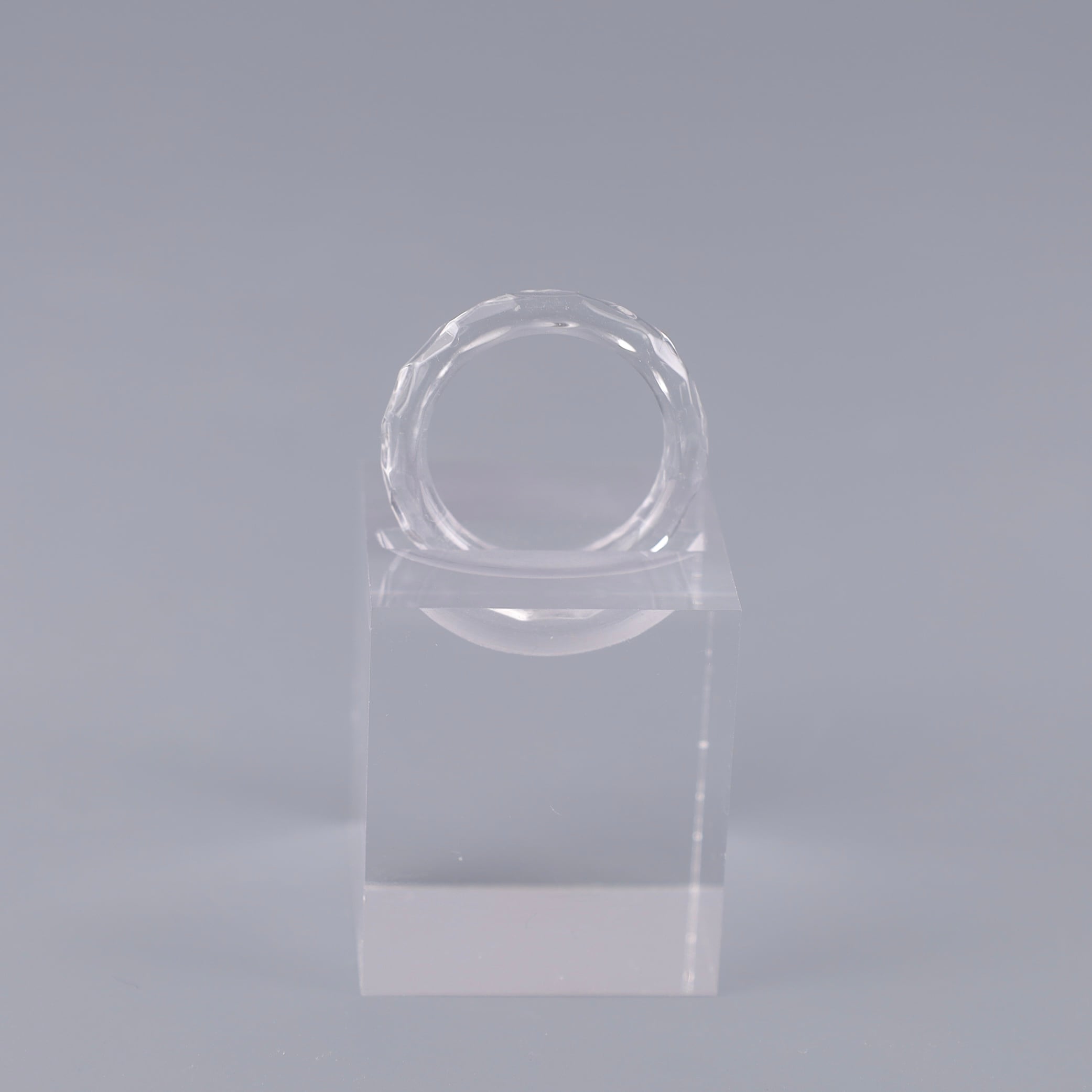 透明で制作した指輪をカットしファイヤーポリッシュにて仕上げました。