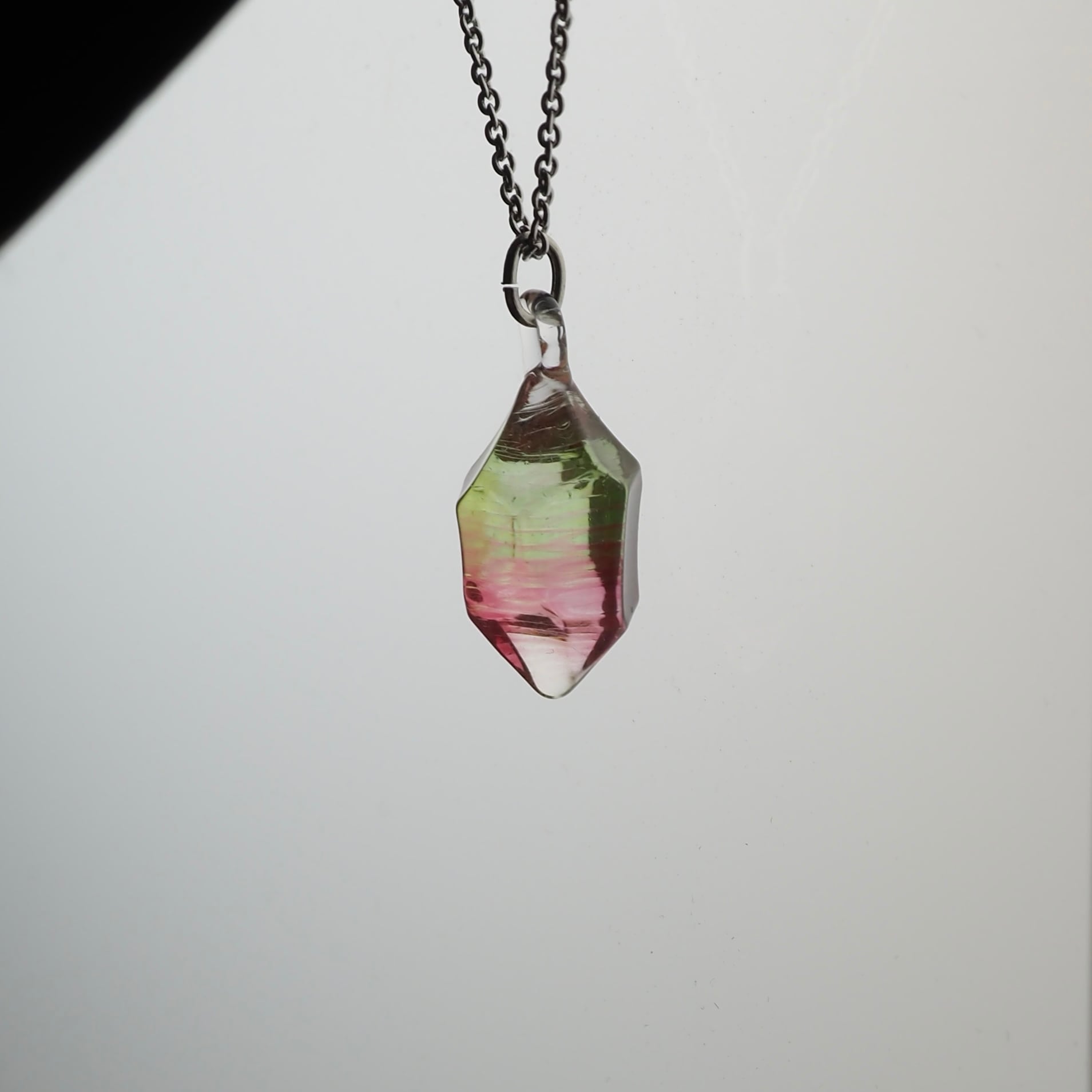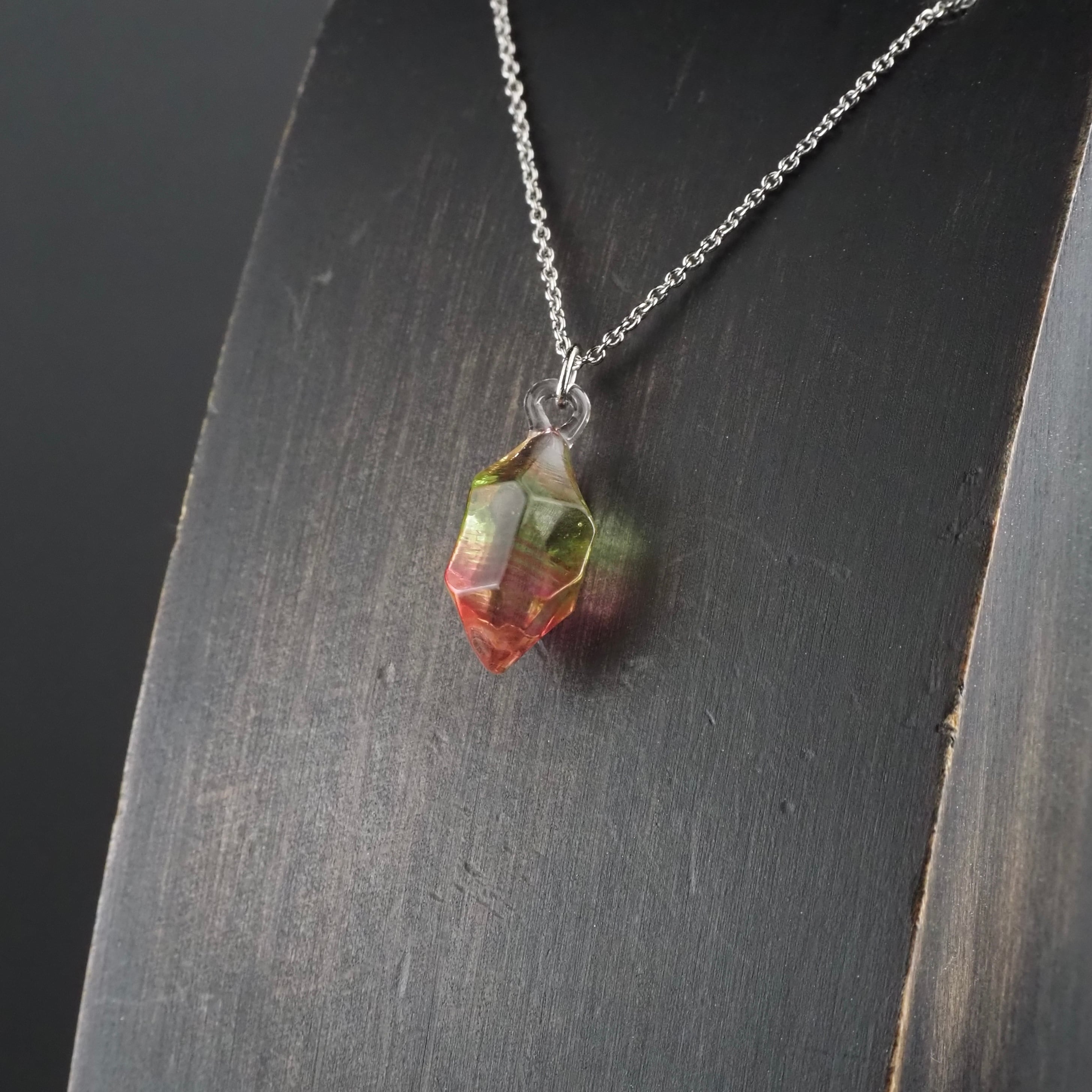 色を混ぜて繋いだガラスで制作し、カットをほどこしファイヤーポリッシュにて仕上げました。